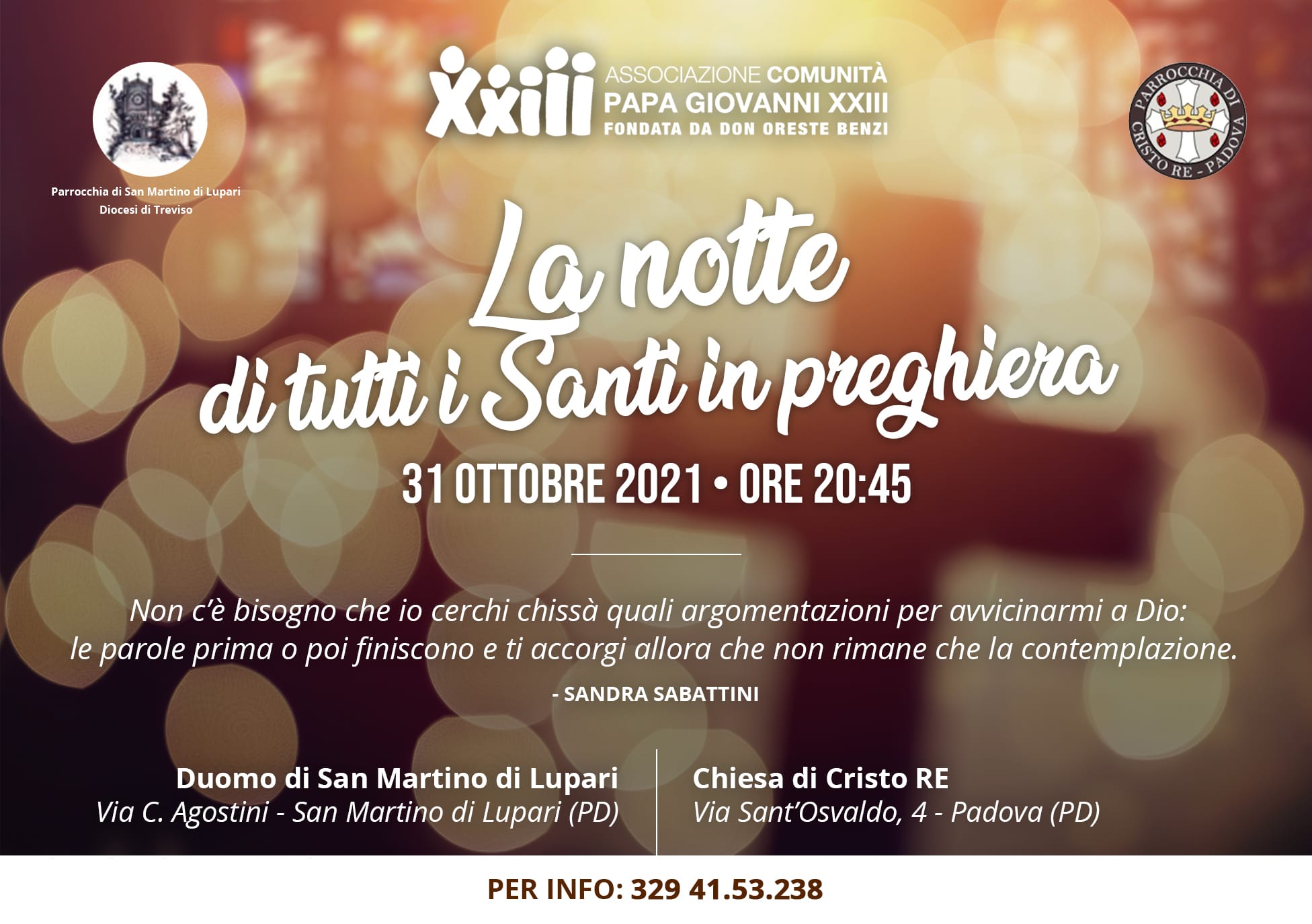 erata di meditazione dedicata a tutti i Santi. Nella Chiesa di Cristo Re nel centro di Padova e in contamporanea nel Duomo di San Martino di Lupari (PD).
