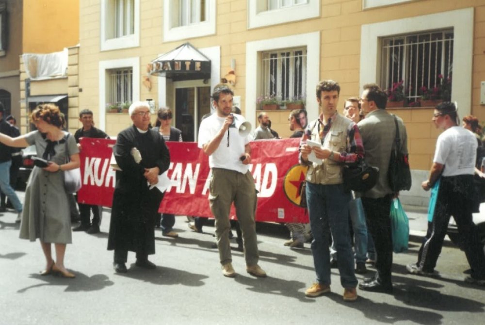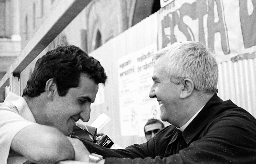 Don Oreste con Antonio De Filippis nel giorno del mancato arresto per diserzione a Rimini il 10 maggio 1986