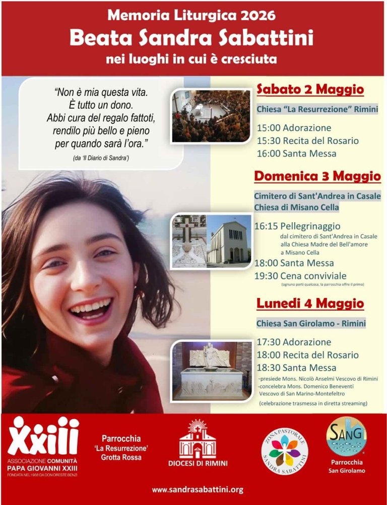 Sui social hanno già iniziato a circolare gli inviti a partecipare agli eventi 2026 per la Memoria liturgica della Beata Sandra Sabattini.
